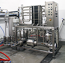 Поточный пастеризатор обеспечивает непрерывность технологического процесса. Автономность конструкции обеспечивает простоту встраивания в технологическую линию.